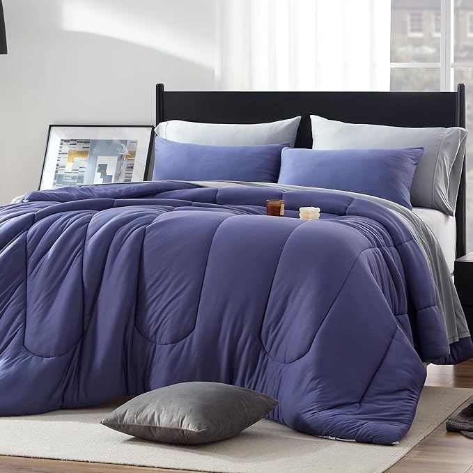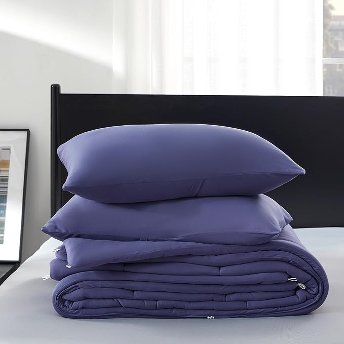 100% Microfiber Jersey Knit Comforter Set Duvet Set with Pillow Shams Navy Blue