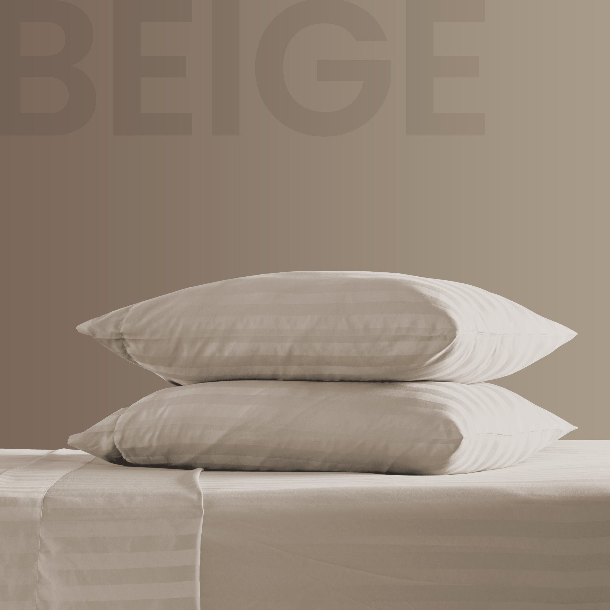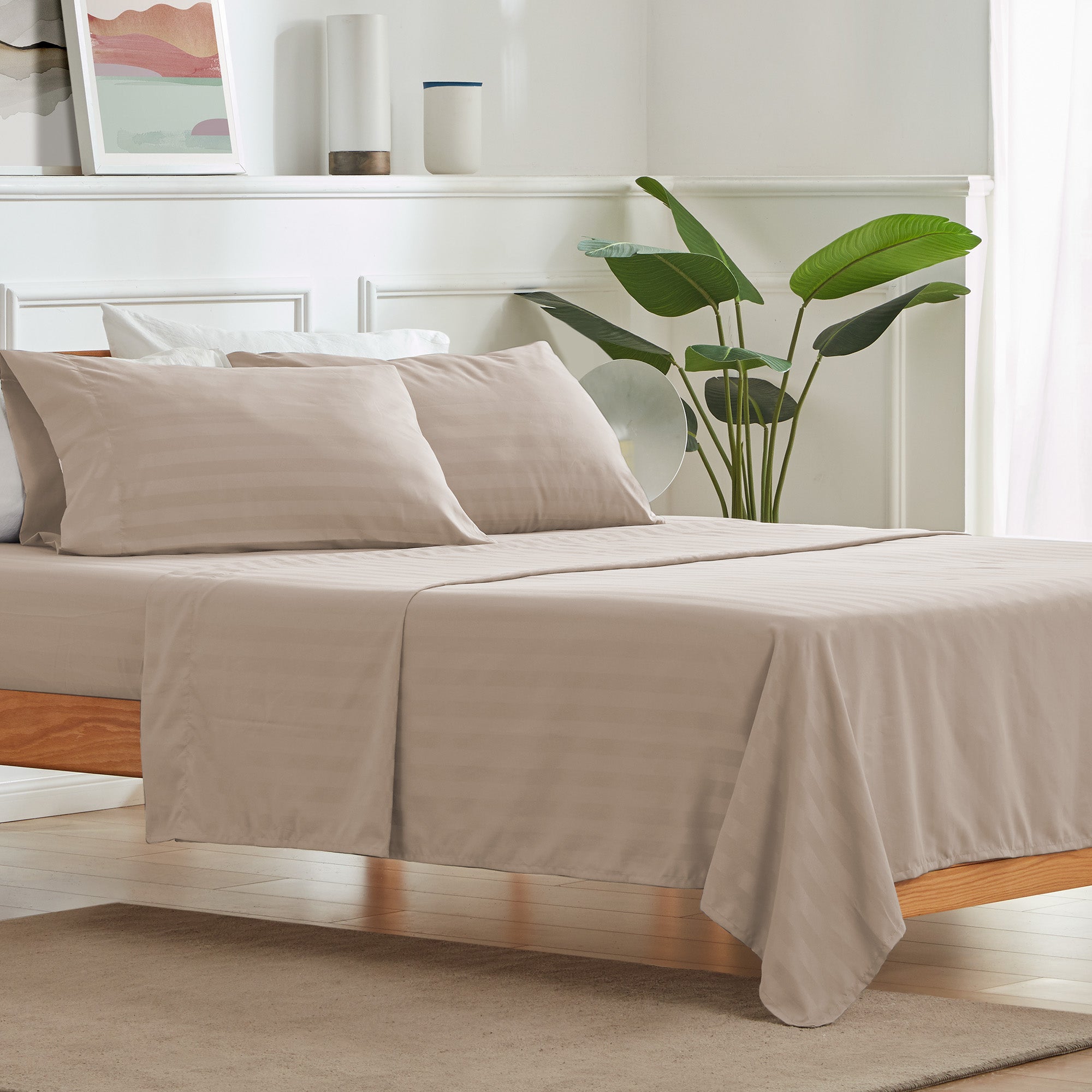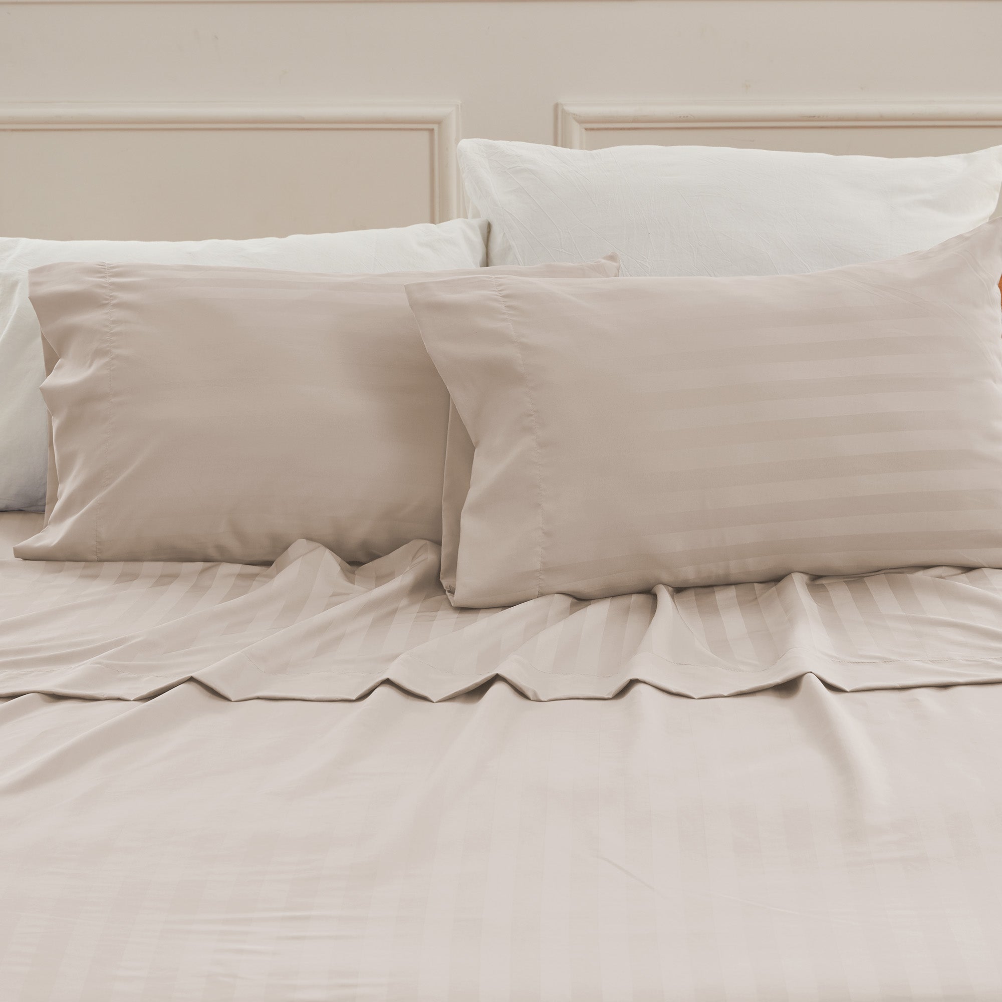 Cooling Satin Striped Sheets Set for Hot Sleepers-Beige