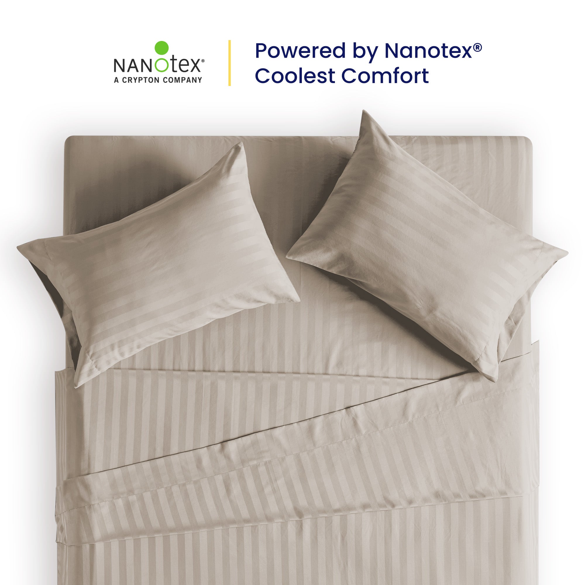 - TEMPERATURE REGULATION. The sheet sets designed with new NANOTEX Coolest Comfort Technology. Fabrics treated with advanced moisture wicking system dries 100% faster than cotton, actually balance your body temperature, pulling moisture away from your skin out to the fabric's surface, moisture can more easily evaporate and gives superior comfort against your skin without extra heat and sweat. Leaving you feeling refreshed and rejuvenated. It will keep you cool in the summer and warm in the winter.