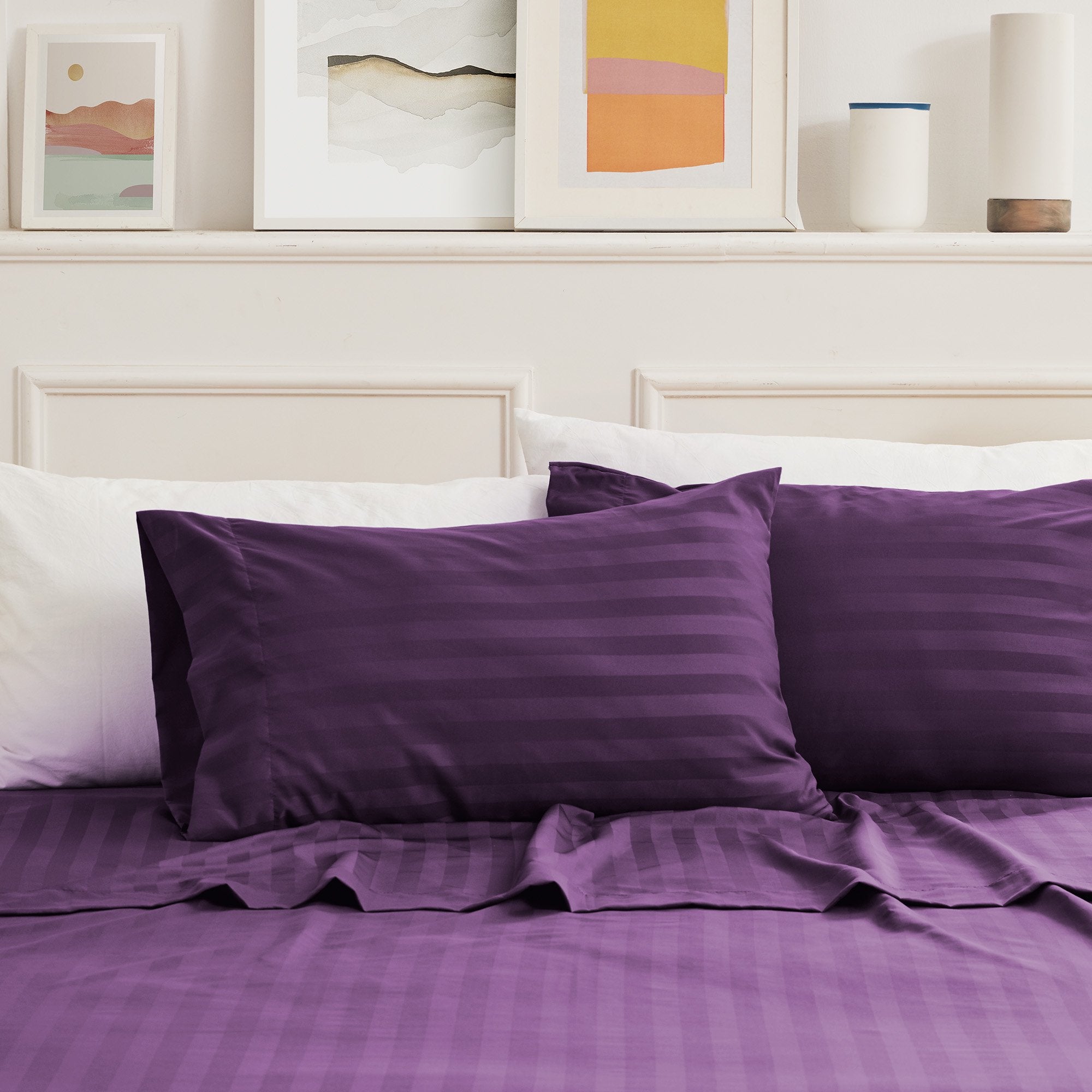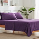 Cooling Satin Striped Sheets Set for Hot Sleepers-Purple