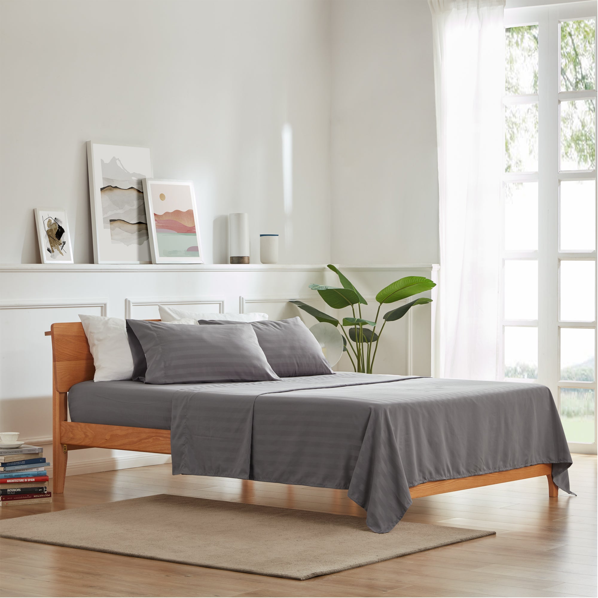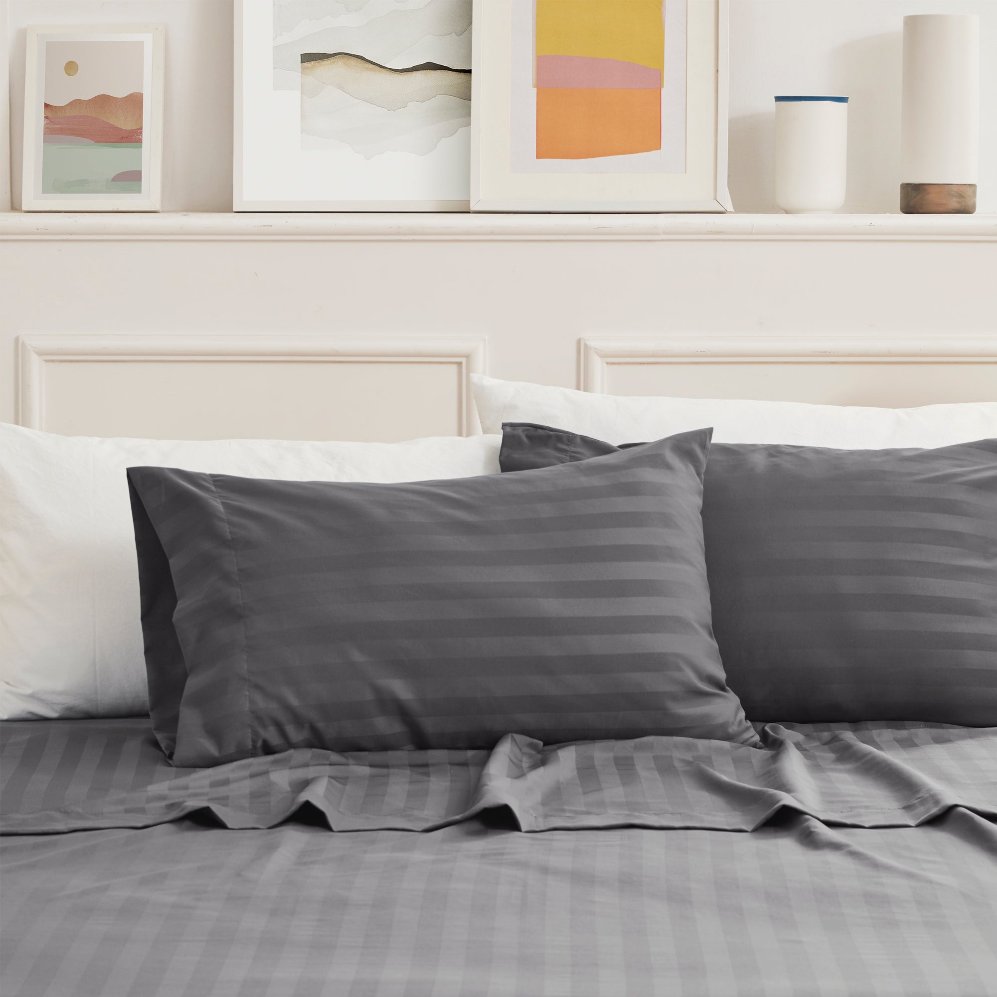 Cooling Satin Striped Sheets Set for Hot Sleepers-Gull Grey