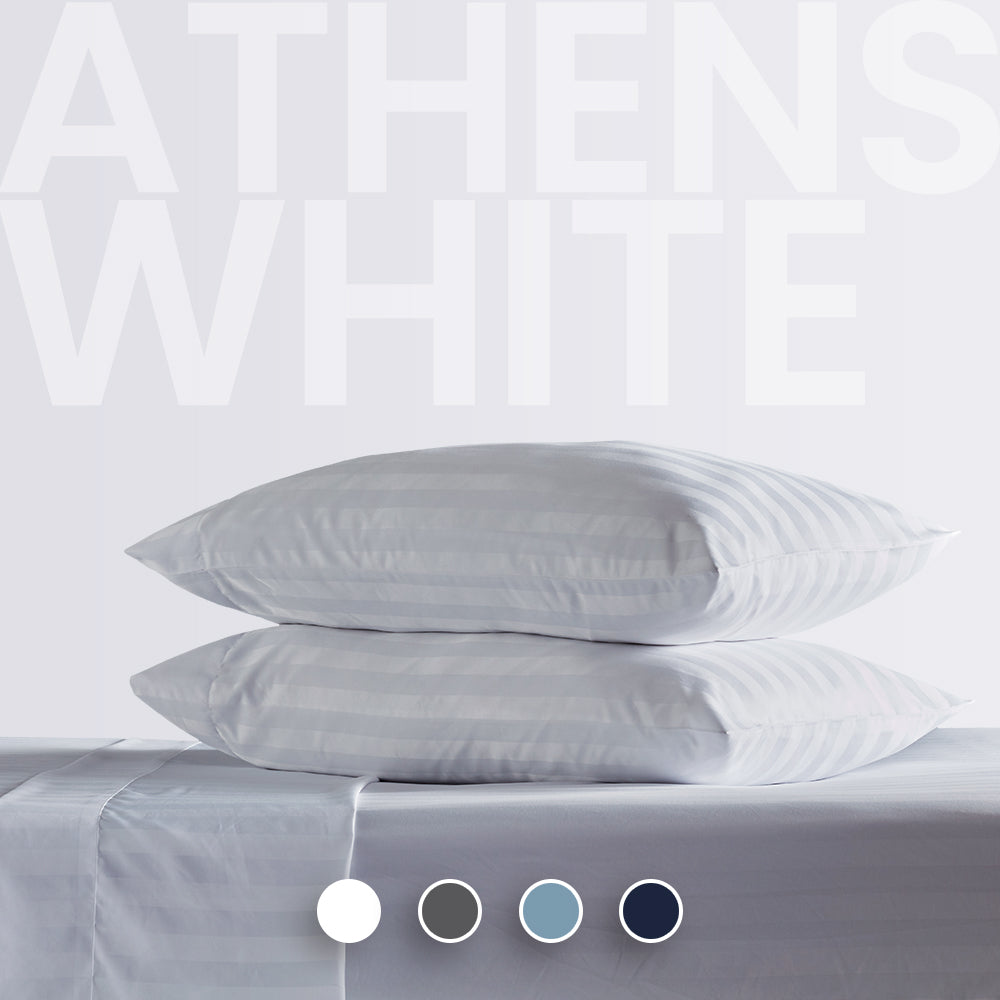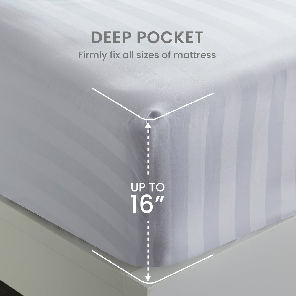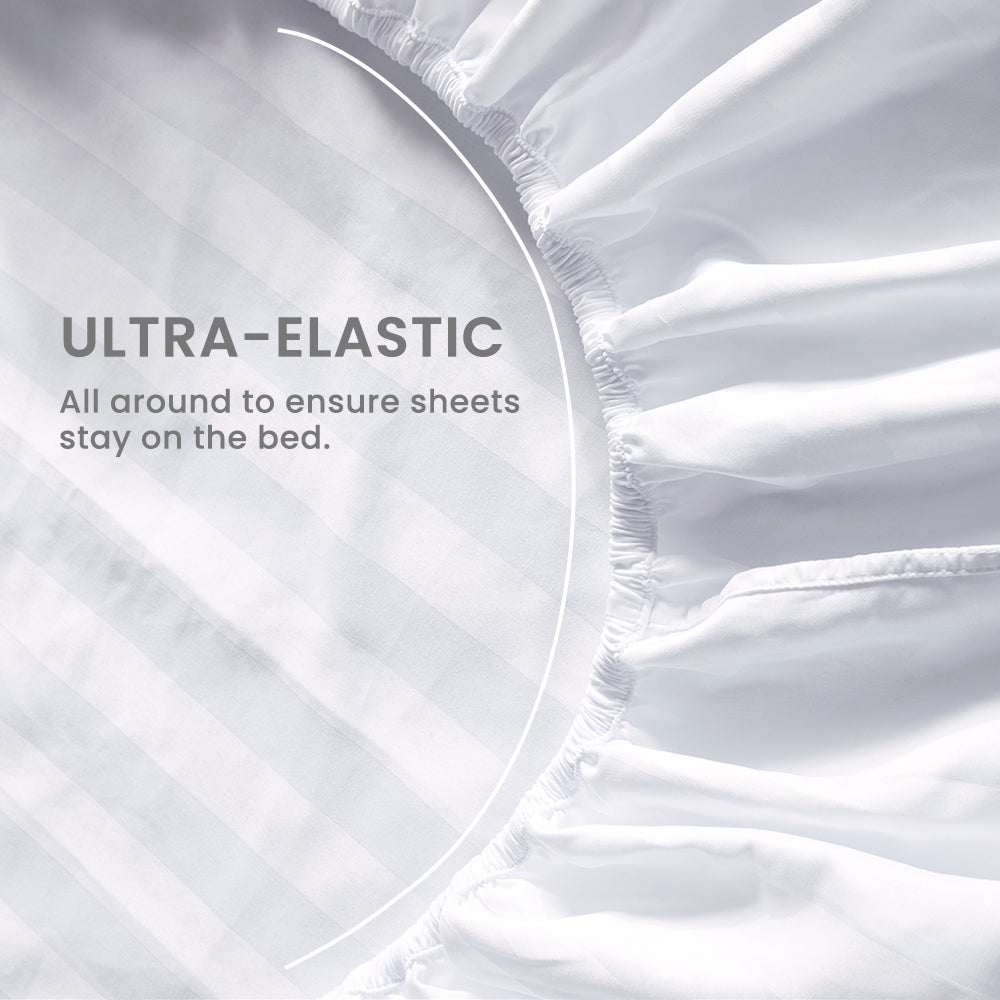 Cooling Satin Striped Sheets Set for Hot Sleepers-White