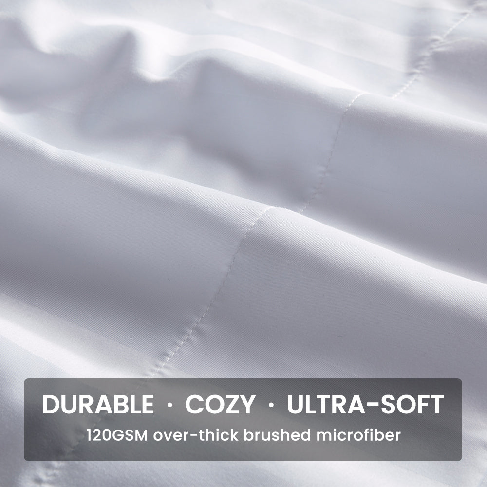 - ULTRA-SOFT & COMFORTABLE: The 120gsm highest quality, over-thick, and ultra-soft double brushed microfiber fabric are thicker, softer and more durable than most market's 90gsm and 110gsm products. The excellent softness makes it very comfortable. Quality workmanship keeps it more stable and durable. The sheets will provide you with the utmost soft and comfortable sleeping experience.