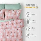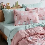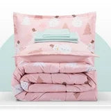 - l SIZE GUIDE - 5 packs TWIN size include: 1 comforter 66x90 inch, 1 fitted sheet 38x74x14 inch, 1 flat sheet 66x96 inch, 1 pillow sham 20x26 inch, 1 pillowcase 20x30 inch; 7 packs FULL/QUEEN size include: 1 comforter 90x90 inch, 1 fitted sheet 60x80x14 inch, 1 flat sheet 90x102 inch, 2 pillow sham 20x26 inch, 2 pillowcase 20x30 inch. Easy care: Machine wash cold, don't use bleach, tumble dry low. You will not worry about the bedding being stained