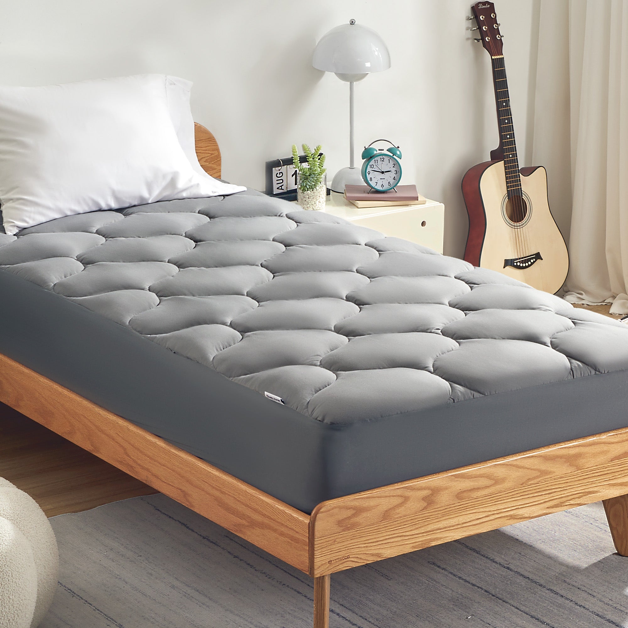 Quilted Fitted Mattress Pad-Grey