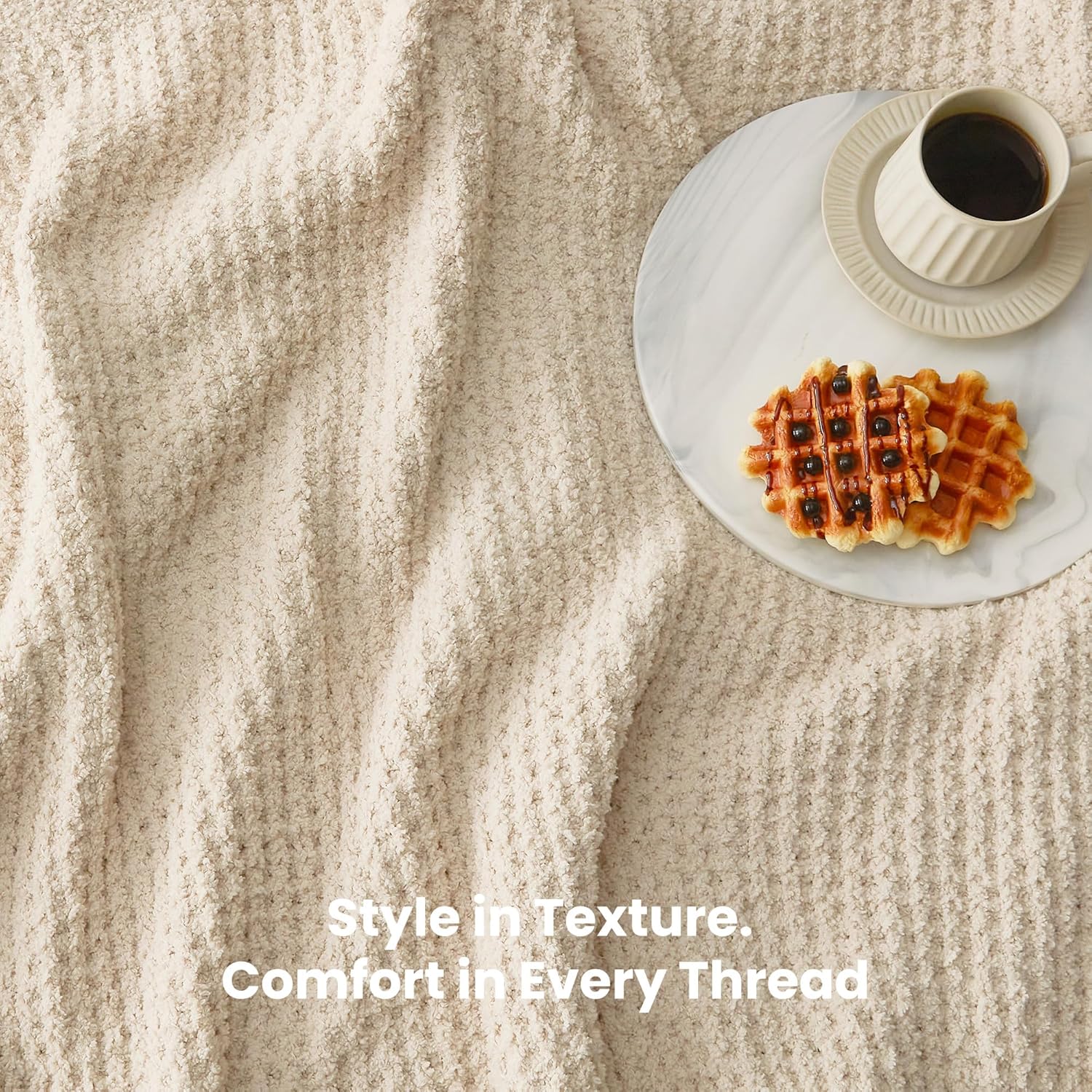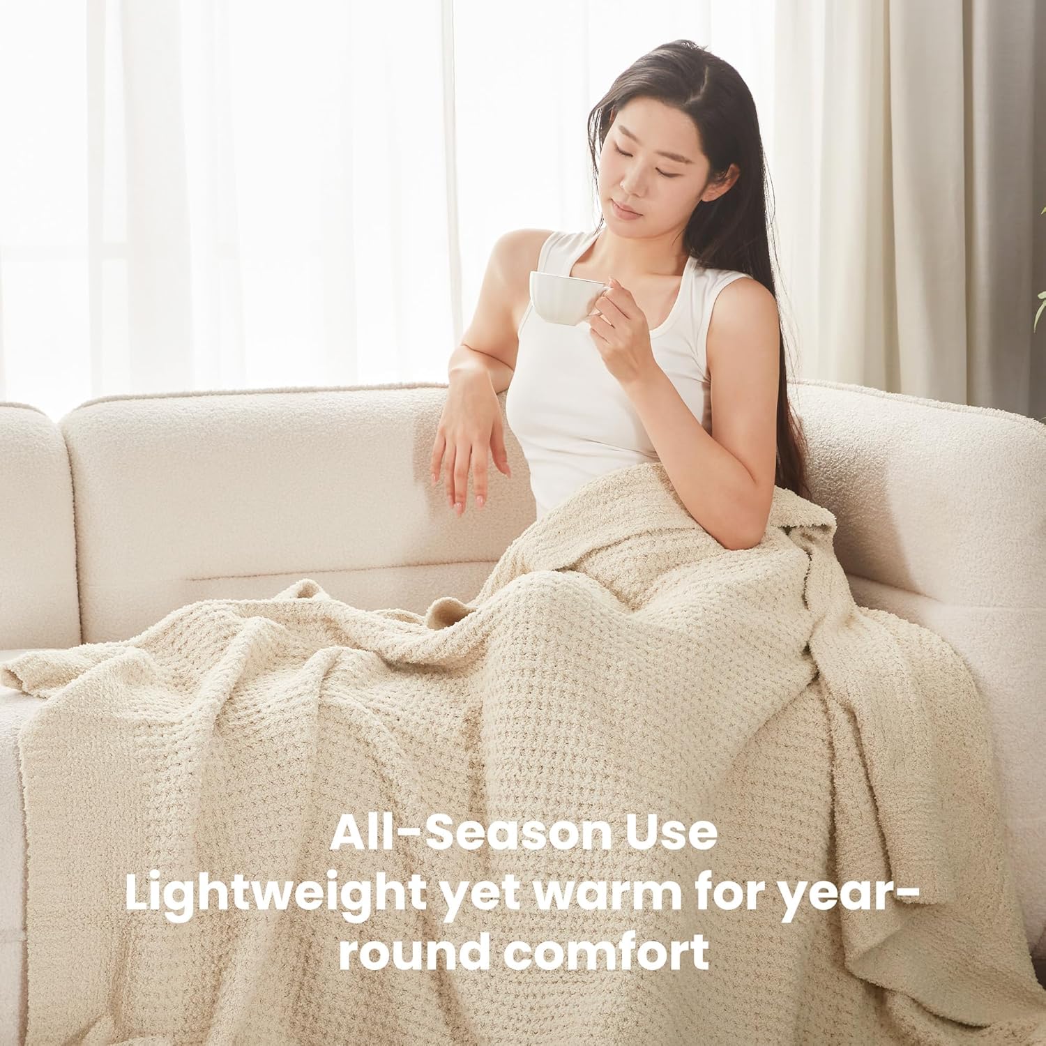 Soft Cozy Throw Blanket - Lightweight Waffle Knit for Couch & Bed