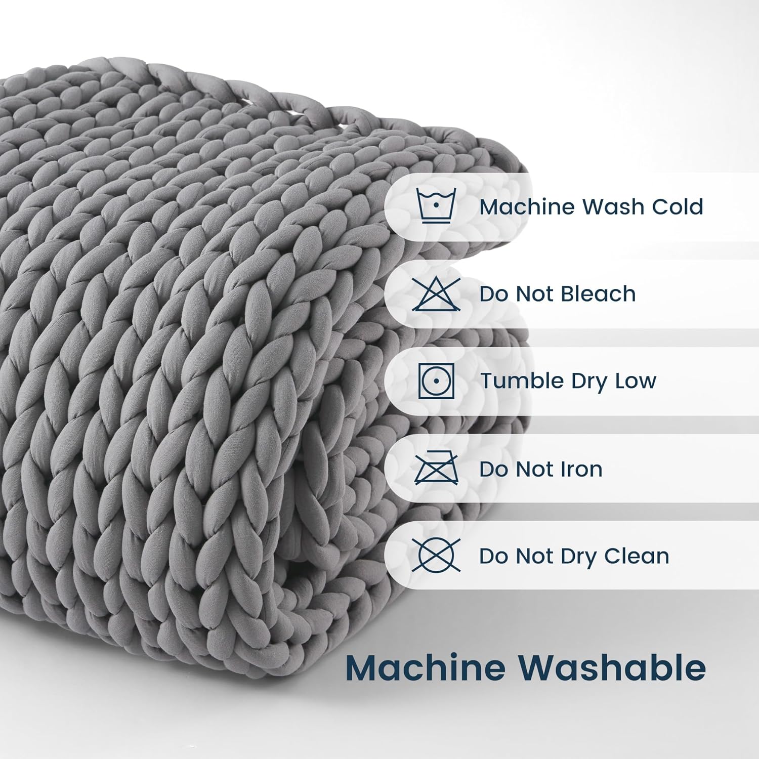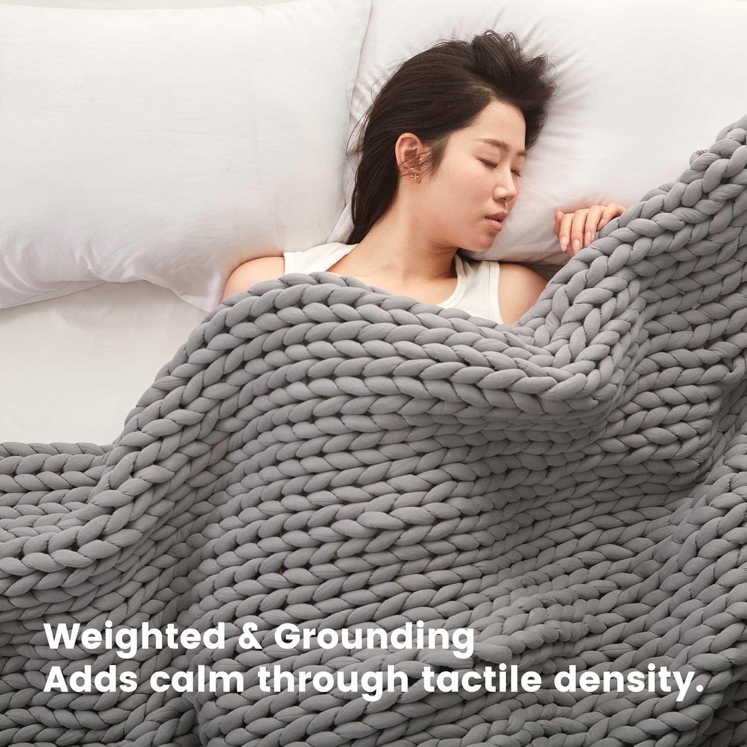 - Evenly Weighted for Better Sleep: Crafted from soft, breathable fabric, this hand-knit weighted blanket provides year-round comfort. Its evenly distributed weight promotes deeper relaxation, offering a more sustainable and soothing alternative to traditional weighted blankets